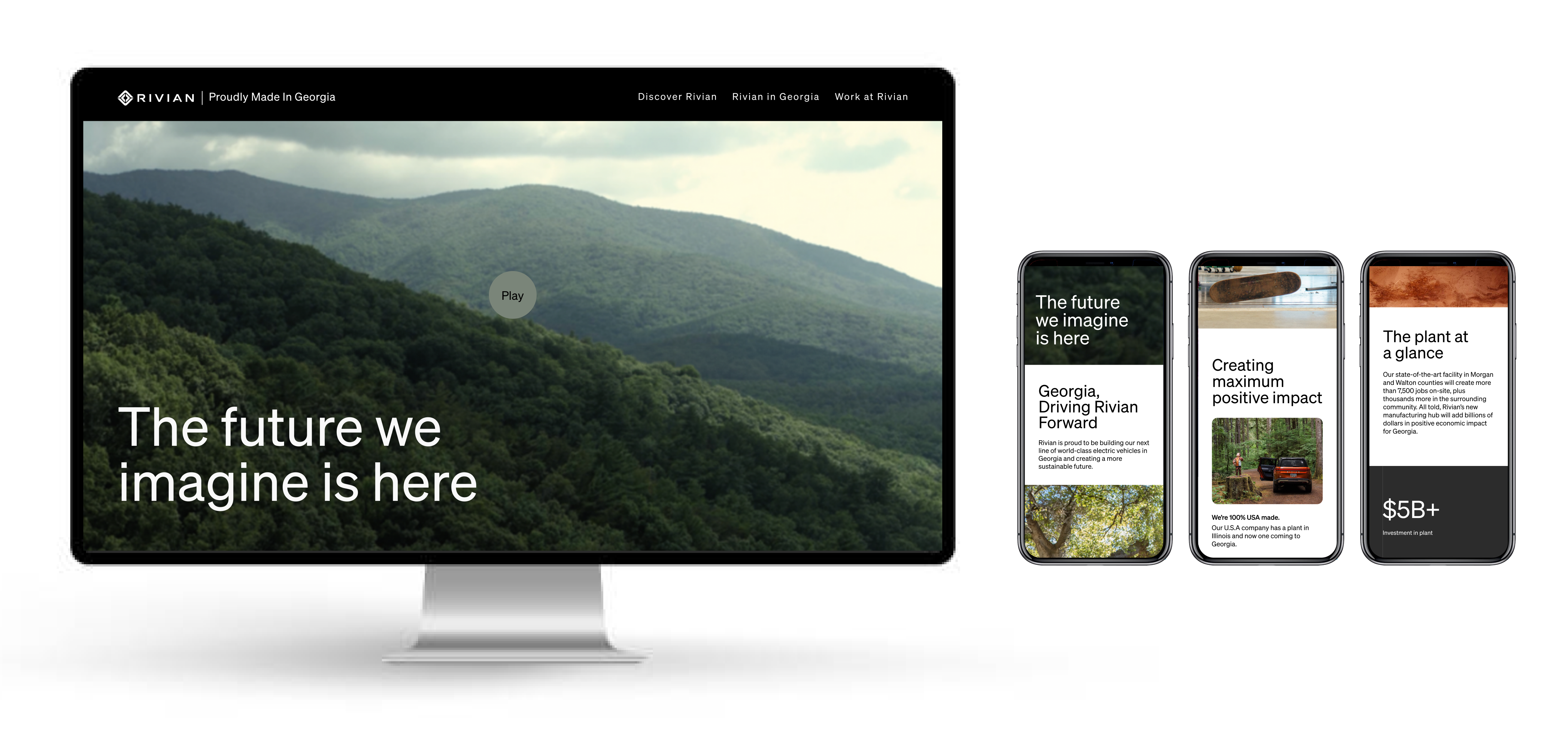 We have a had a great amount of influence in getting information out there about Rivian's plant in Georgia. In addition to the site, our team was scoped to create 2 high end production videos for the site, videos that created inspiration and acknowledgement of the landscape and cultural significance of Rivian's implant in rural Georgia. And Lastly, since the launch of Rivian's site Proudly Made In Georgia, the team has been asked to create a second Rivian site, which will be launching soon.